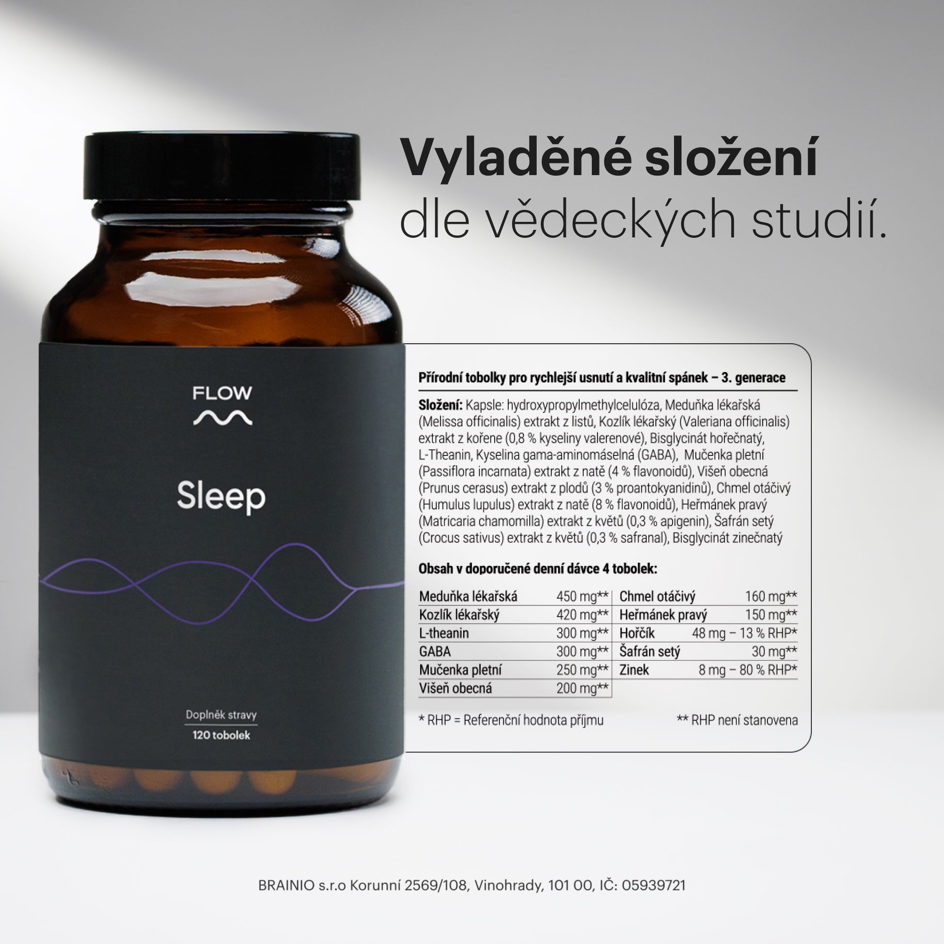 Kombinace přírodních látek pro rychlejší usnutí a kvalitnější spánek.
